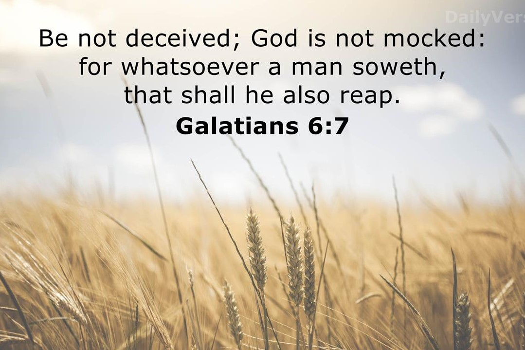It is written: “Do not be deceived: God cannot be mocked. A man reaps what he sows. Whoever sows to please their flesh, from the flesh will reap destruction; whoever sows to please the Spirit, from the Spirit will reap eternal life.” Gal. 6:7-8 niv