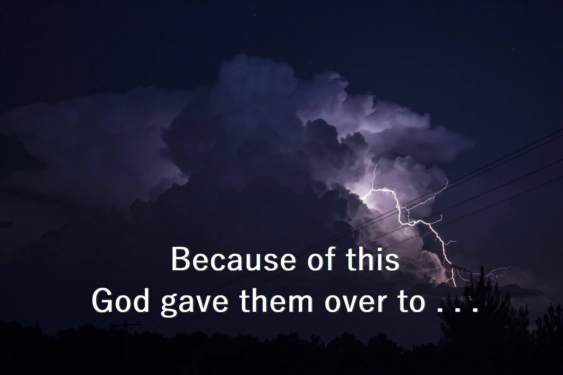And then v26, “Because of this, God gave them over to shameful lusts,” and v28, “Furthermore, just as they did not think it worthwhile to retain the knowledge of God, so God gave them over to a depraved mind- -.” (I didn’t write those verses, I only quoted God.) See: https://biblia.com/bible/esv/romans/1/18-32
