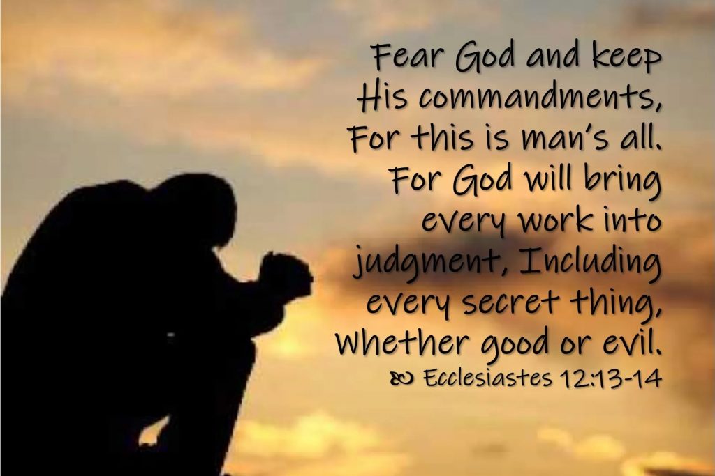 THE CONCLUSION, WHEN ALL HAS BEEN SAID, IS – – The conclusion,when everything has been heard,is: fear God and keep His commandments,because this applies to every person.For God will bring every act to judgment,everything which is hidden,whether it is good or evil.* Do we tremble at the thought of the law of gravity? Probably not.…