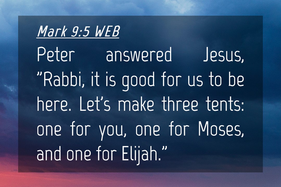 Most of us can do things if we are always at some heroic level of intensity, simply because of the natural selfishness of our own hearts. But God wants us to be at the drab everyday level, where we live in the valley according to our personal relationship with Him. Peter thought it would be a wonderful thing for them to remain on the mountain, but Jesus Christ took the disciples down from the mountain and into the valley, where the true meaning of the vision was explained (see Mark 9:5-6, Mark 9:14-23).