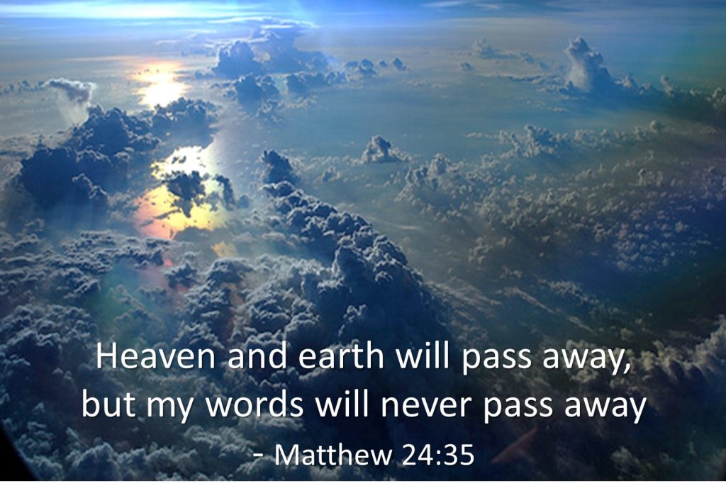 As soon as its twigs get tender and its leaves come out, you know that summer is near. 33 Even so, when you see all these things, you know that it is near, right at the door. 34 Truly I tell you, this generation will certainly not pass away until all these things have happened. 35 Heaven and earth will pass away, but my words will never pass away.