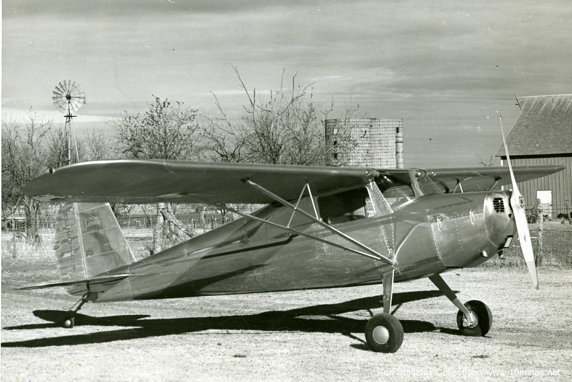 Cessna 120 NC2016V down on the farm, wood prop, ’47 – factory photo