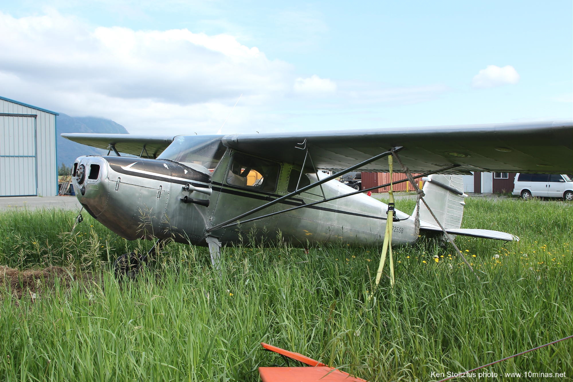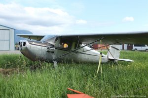 Cessna 140 N72558 (2) looking forlorn in the tall grass at Palmer, AK 6-13