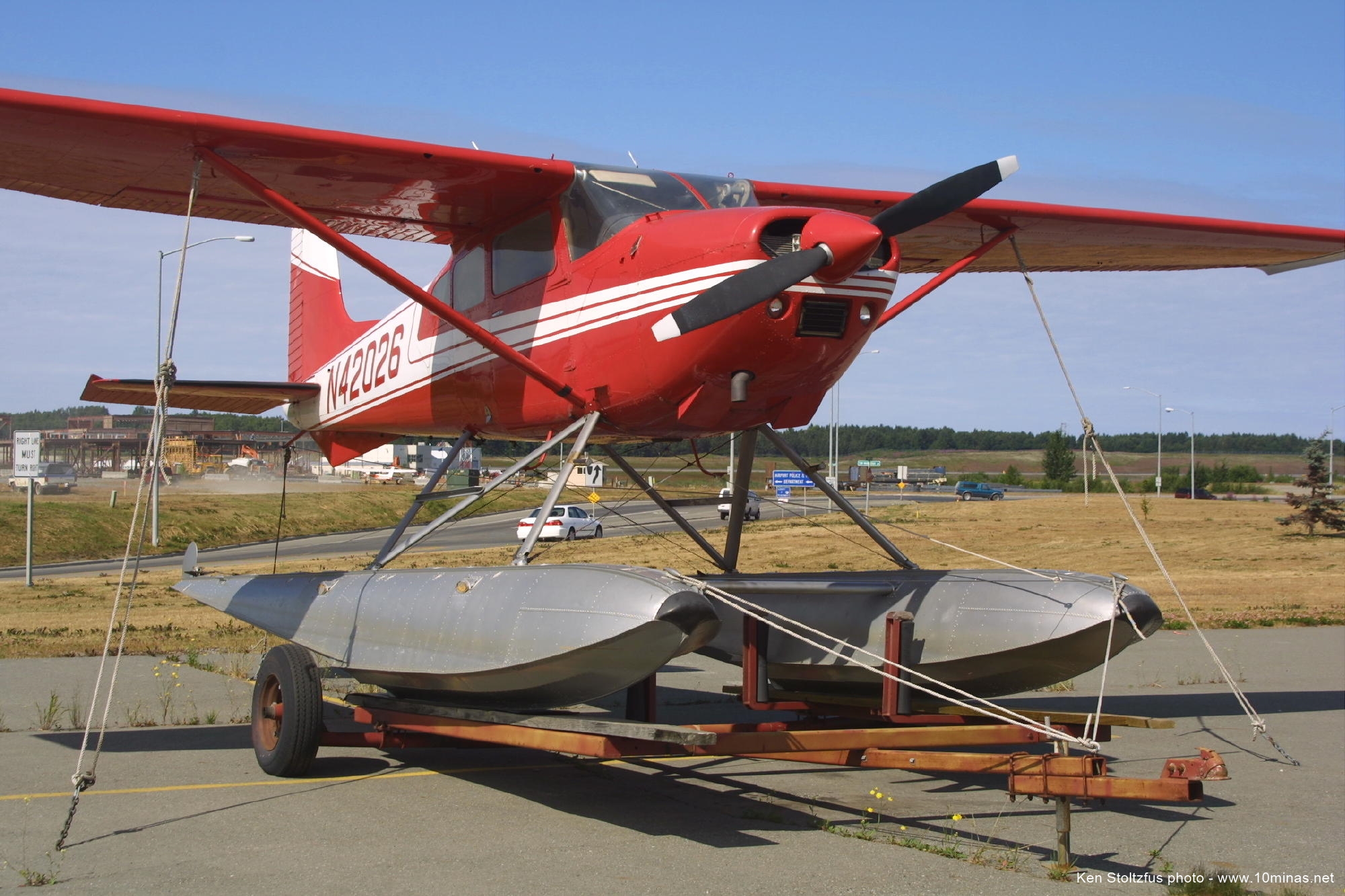 Cessna 180 N42026, ’72, on a typical dolly at Lake Hood, ANC, AK 7-04