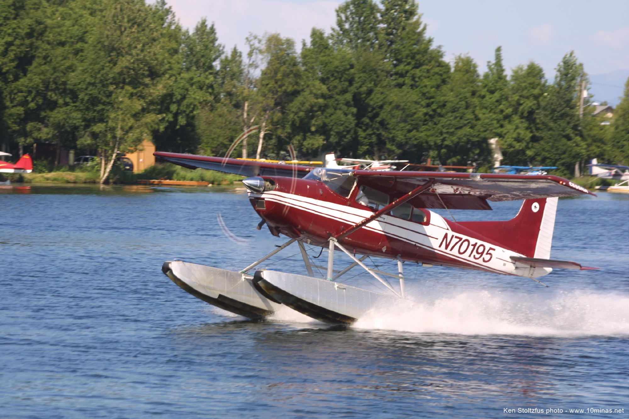 Cessna 185 N70195 A185E taking off at Lake Hood, ANC, AK 7-04