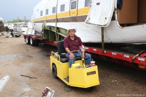 Douglas DC-3, C-47 N96H at Duff Aircraft, Denver, 9-13 (3), with yours truly on the EZGO as we were filling the fuselage with other parts that my twin Karl bought.