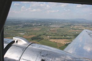 Douglas DC-3, C-47B N47E (6), offering a view of Virginia’s beautiful Shenandoah Valley, 9-10. Elaine and I and our three sons lived there,, 1967-74.