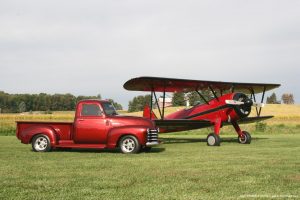 1943 Stearman N122Q (2) at Stoltzfus Airfield, 9-12 with the 1947 Chevy street rod restored by brother-in-law Glenn Leaman. Both were previously owned by our fathers.